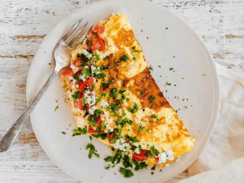Yes, there are vegetarian options such as bagels with cream cheese, omelettes, and muffins.